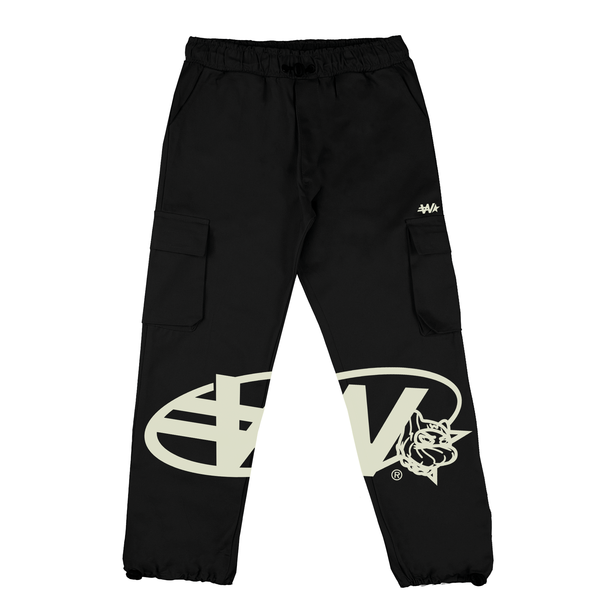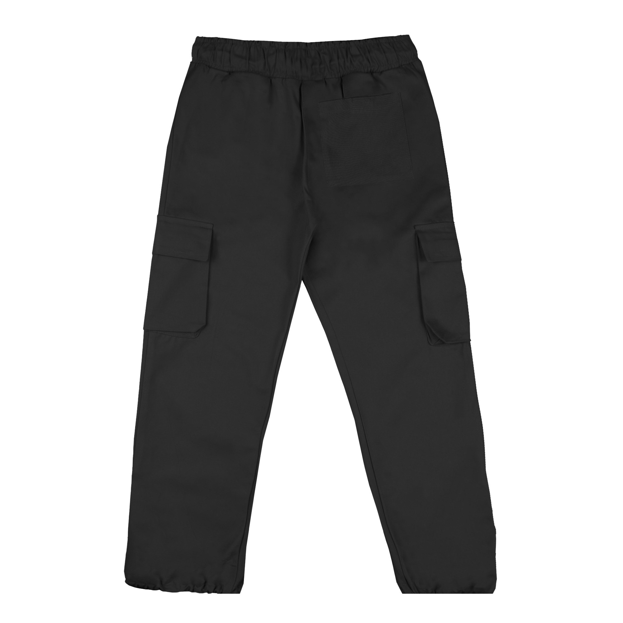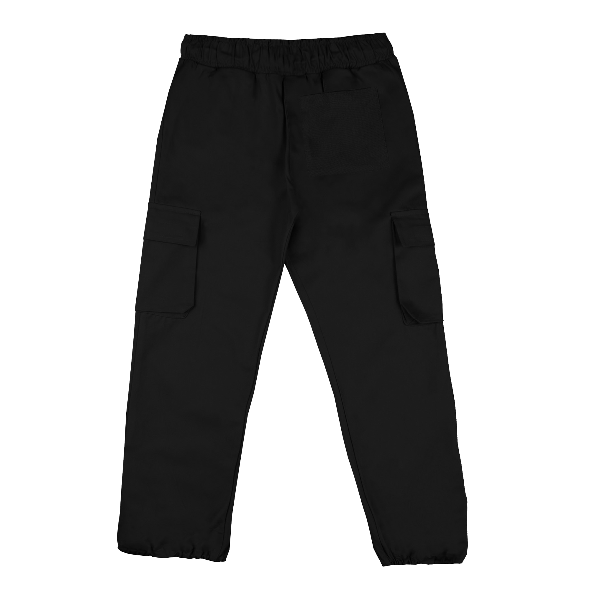 Cargo pants in twill fabric, featuring an adjustable waistband and cuffs with elasticated bands. Includes front slash pockets, back and side pockets with flaps.